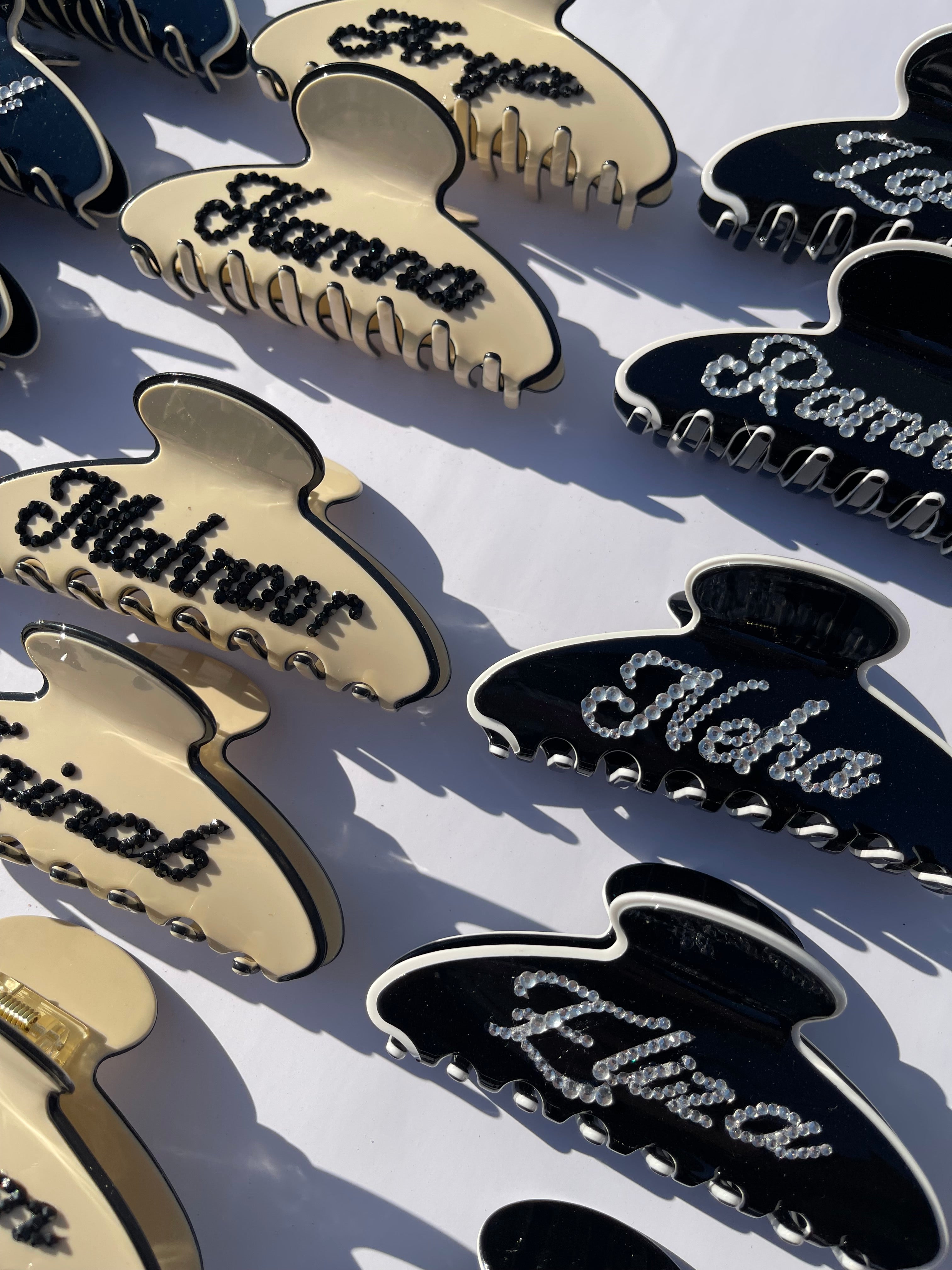 Big enough to hold a full head of hair and functional enough to wear from morning to night. No pull, no headache, just good hair. Use this hair claw clip on dry or wet hair. Custom biodegradable acetate